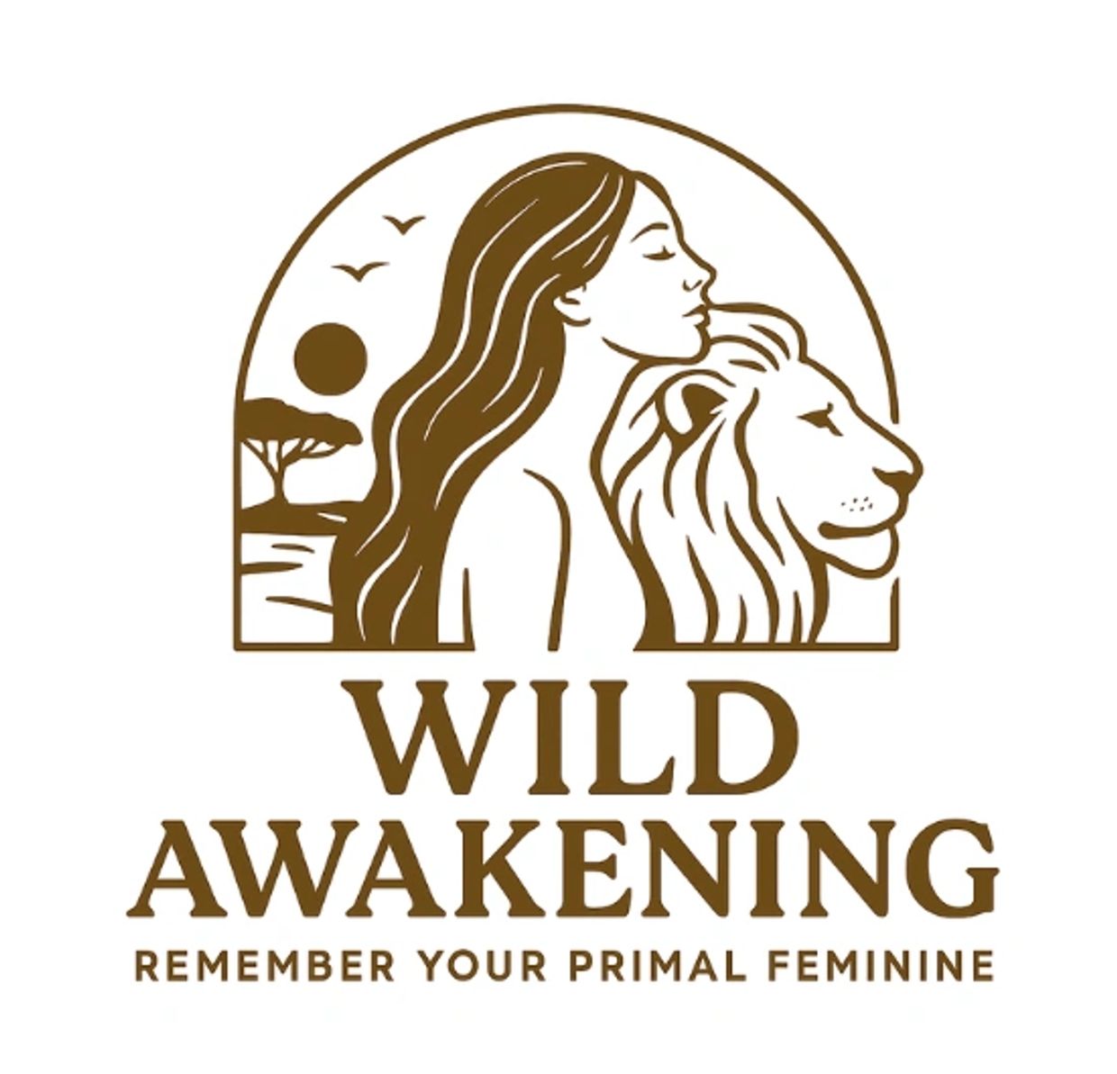Our Wild Awakening emblem reflects the essence of this retreat — a woman rising in her natural strength, beside a lion representing grounded power, instinctual presence, and the unwavering courage found in nature’s rhythms.